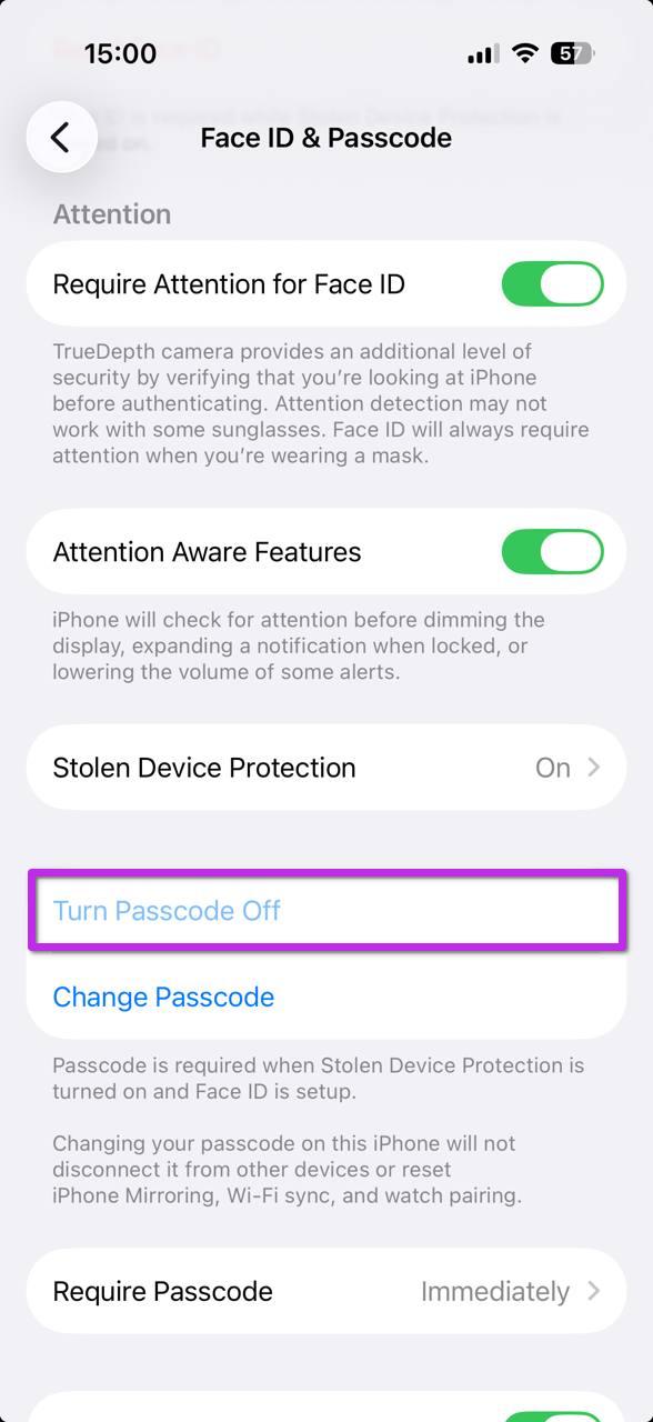 ⚠️ Note: If your device uses Face ID or Touch ID, you’ll need to disable it first before turning off your Passcode. You can turn them back on once Removal Prevention setup is complete.